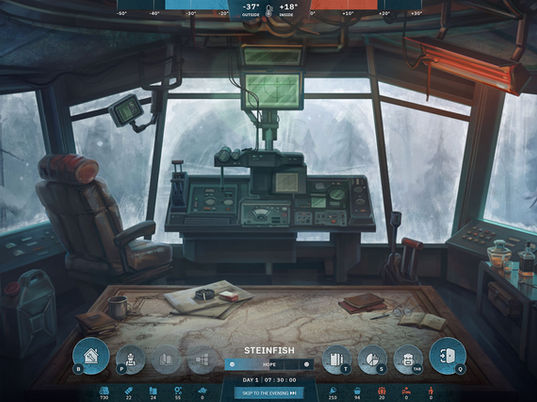 Welcome to the snow-covered wastelands of a once-thriving world. You will lead an expedition to find a place suitable for establishing a settlement. At your disposal is a crew of 20 people and a ship - a machine capable of covering vast distances while carrying everything necessary for a long journey.