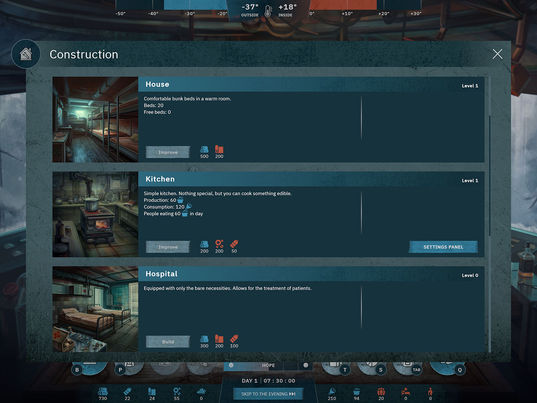 Depending on the difficulty level, events can either add interest to the story, or deal you a crushing blow. Primarily, the events are designed to add variety and increase the complexity of the gameplay. But let's not forget the good things - sometimes a couple of new workers or a stash of supplies can save the entire expedition.